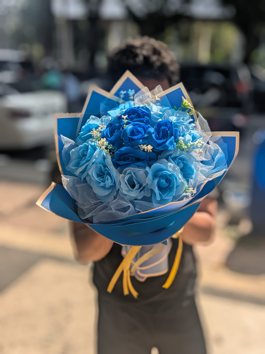 💙 Buket Mawar Artificial Nuansa Biru – Tahan Lama & Elegan dari Toko Bunga Demak