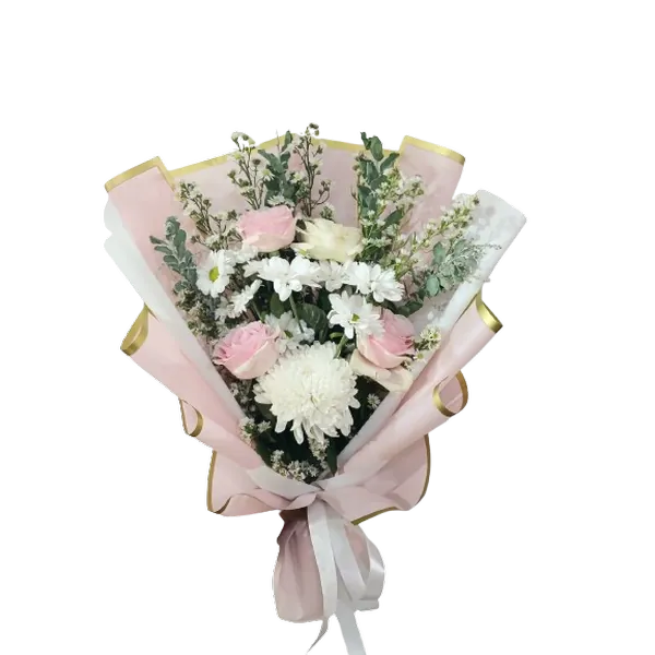 Jika kamu sedang mencari hadiah yang tampil lembut, penuh makna, tapi tetap affordable dan berkelas, buket ini adalah pilihan yang sempurna. Kombinasi mawar yang romantis, aster yang ceria, dan krisan yang klasik menciptakan harmoni visual yang memikat hati.
